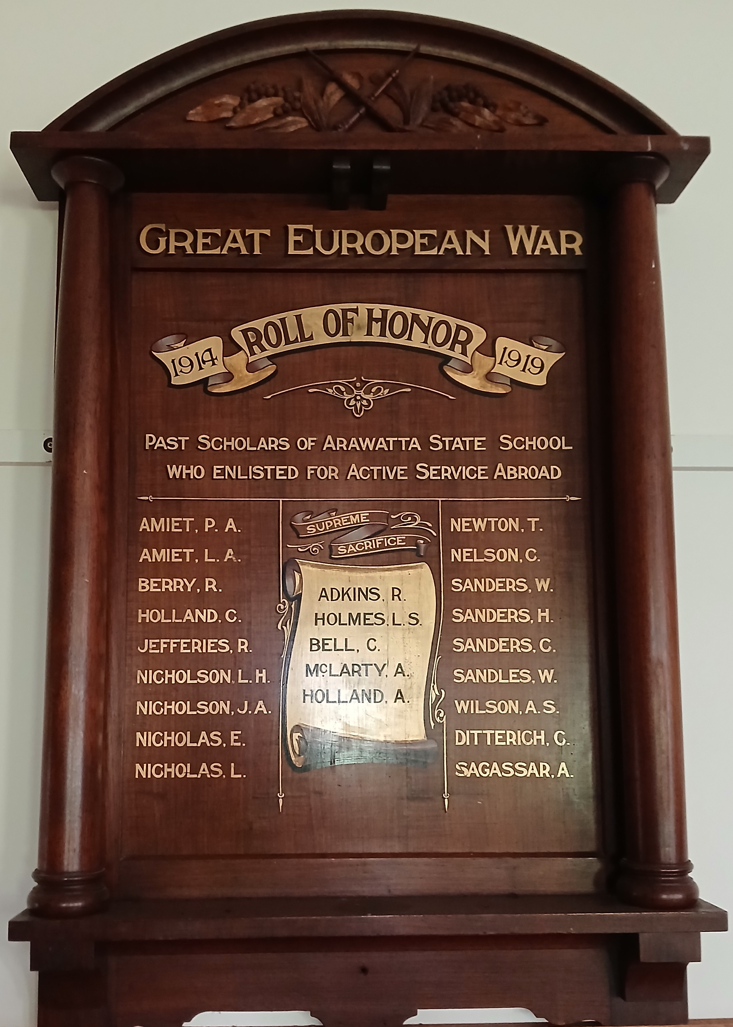 Arawata State School Great War Roll of Honor