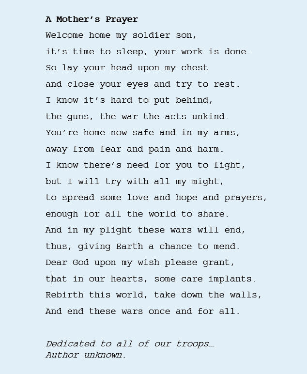 In our streets and squares and churches, in our cities and villages and in all our houses, we come in contact with mothers who have lost their sons or are living in anxiety