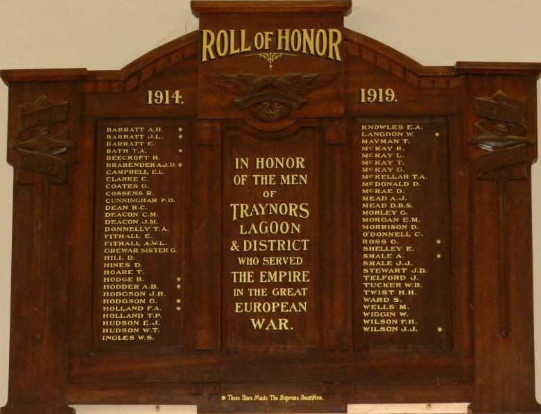 Traynors Lagoon Honour Roll WW1