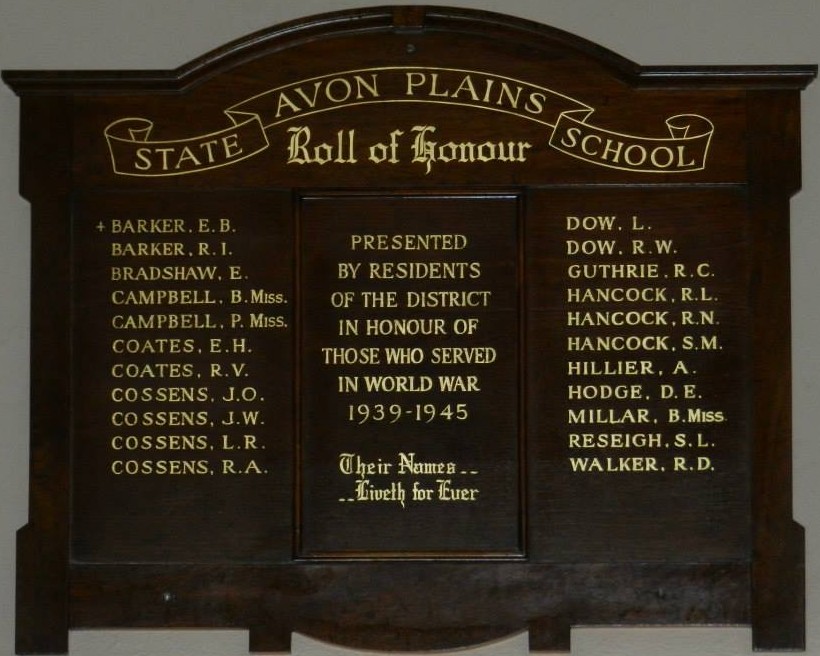 Avon Plains State School Roll of Honour WW2