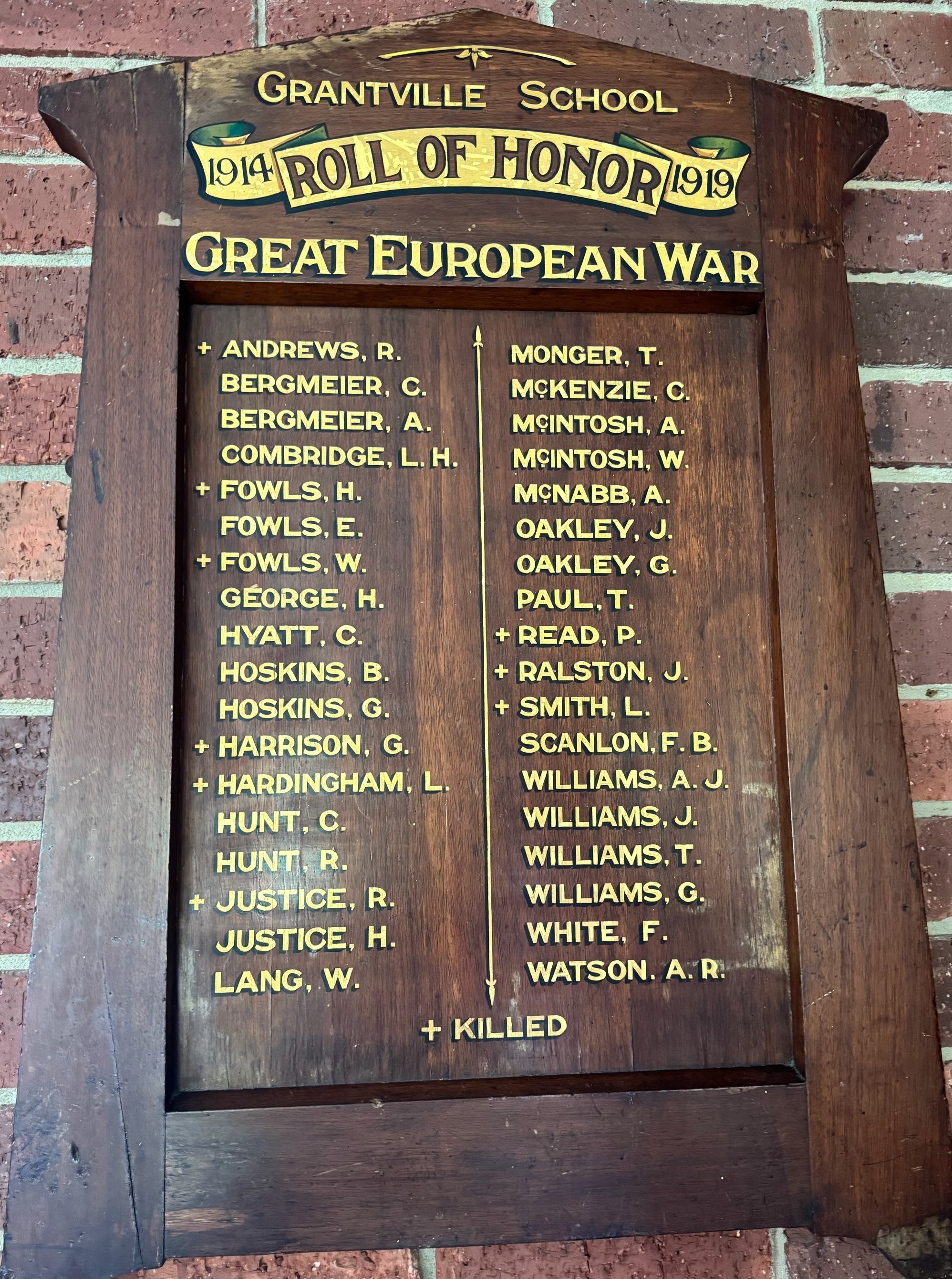 Grantville State School Roll of Honor