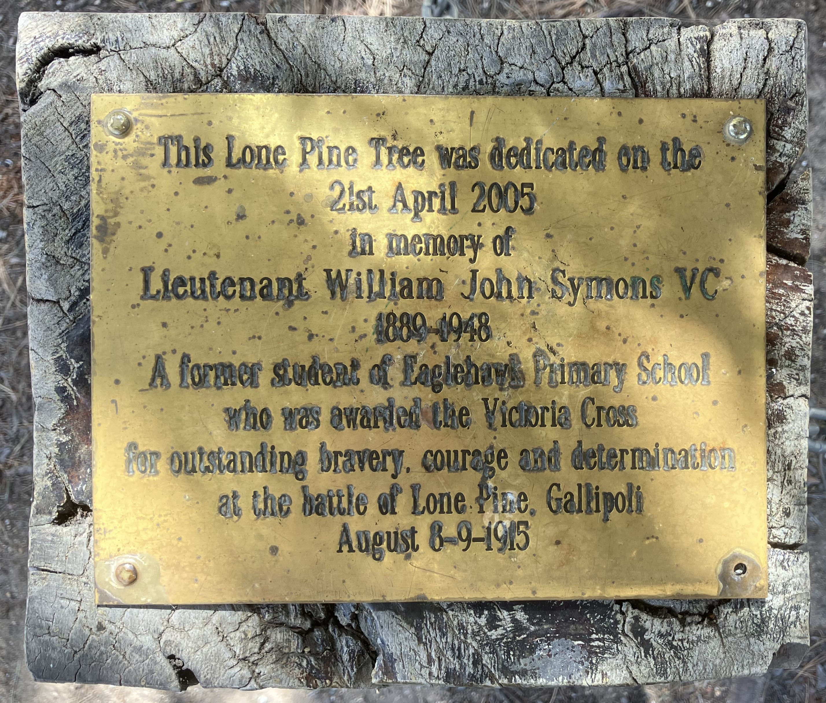 William John Symons VC, Memorial Pine