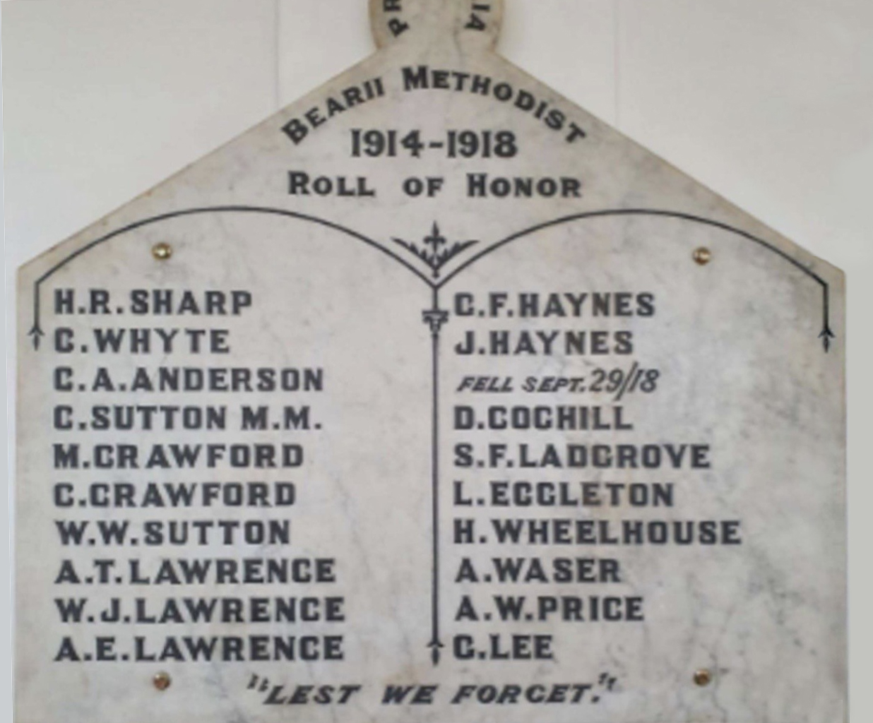 Bearii Methodist 1914-1918 Roll of Honor